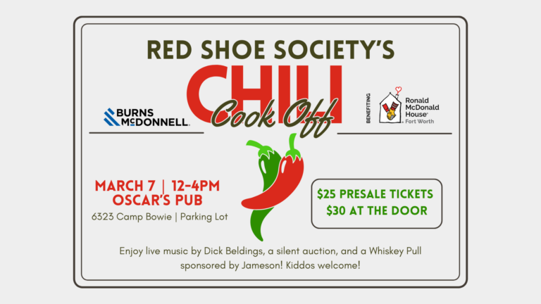 We will have live music featuring Dick Beldings Band, delicious chili from our awesome cook teams, and the opportunity to participate in a silent auction. Grab your friends and swing by anytime to support the families staying at the Ronald McDonald House of Fort Worth!